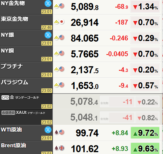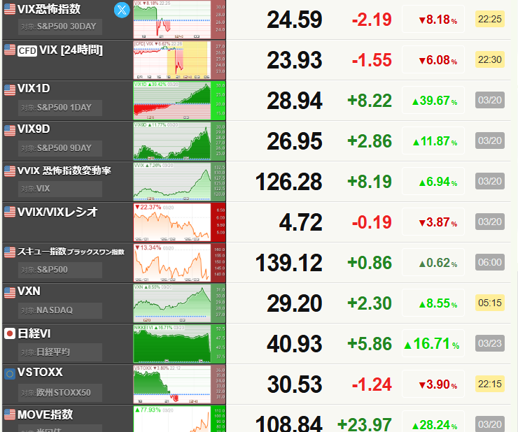 しかし、引け後のトランプ大統領の「2日間でイランと建設的な交渉ができた。5日間の攻撃停止」の命令より夜間の先物は大反発。日経平均先物は3000円上げ、WTI原油、VIXともに大幅に低下しました。